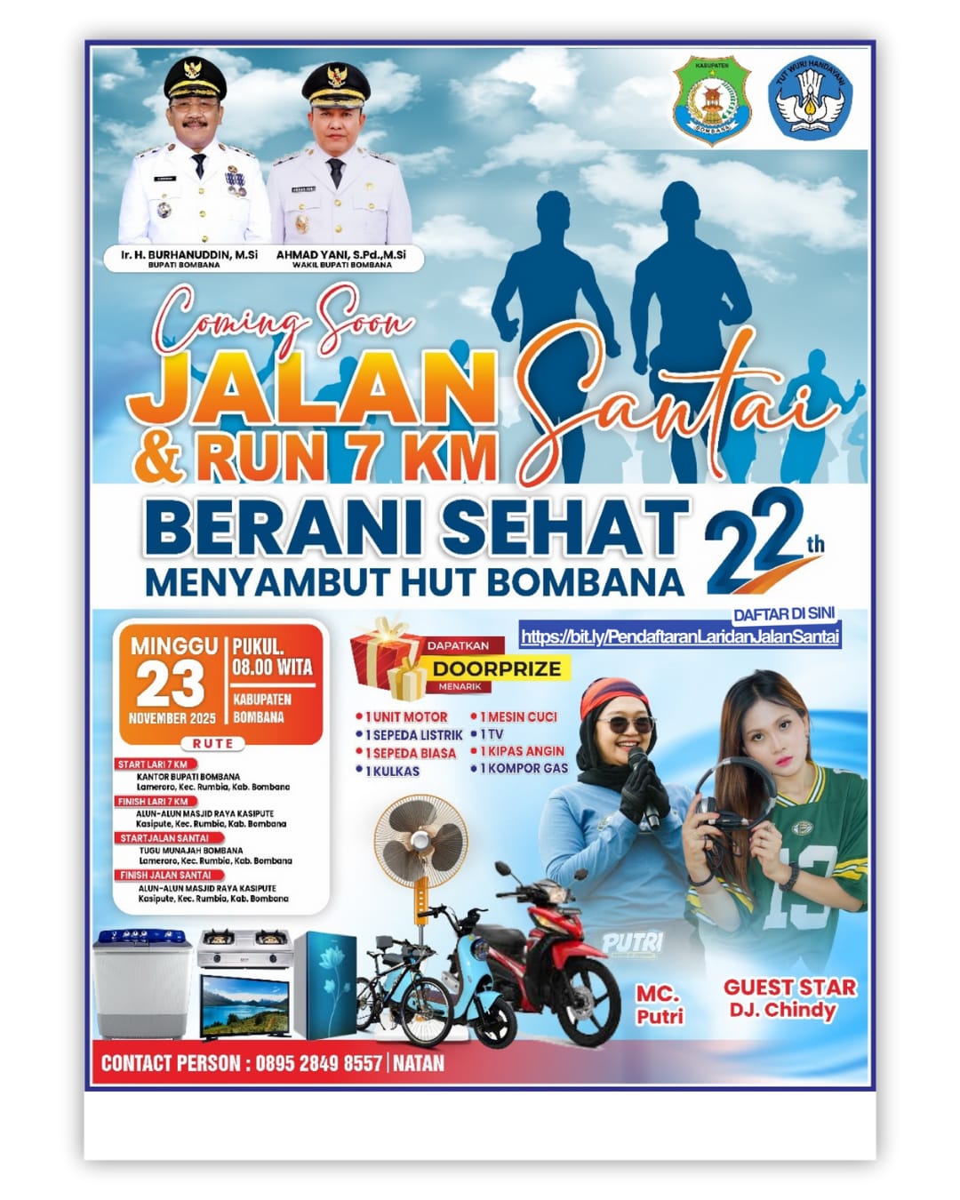 salam pendidikan, salam budaya! bombana cerdas, berkarakter, berakhlak, berbudaya! Guna menyambut HUT ke-22 Kabupaten Bombana, Dinas Pendidikan dan Kebudayaan menggelar serangkaian acara lho yang seru-seru di bulan November nanti! Di tanggal 23 November nanti, akan ada lomba lari 7 km, jalan ...